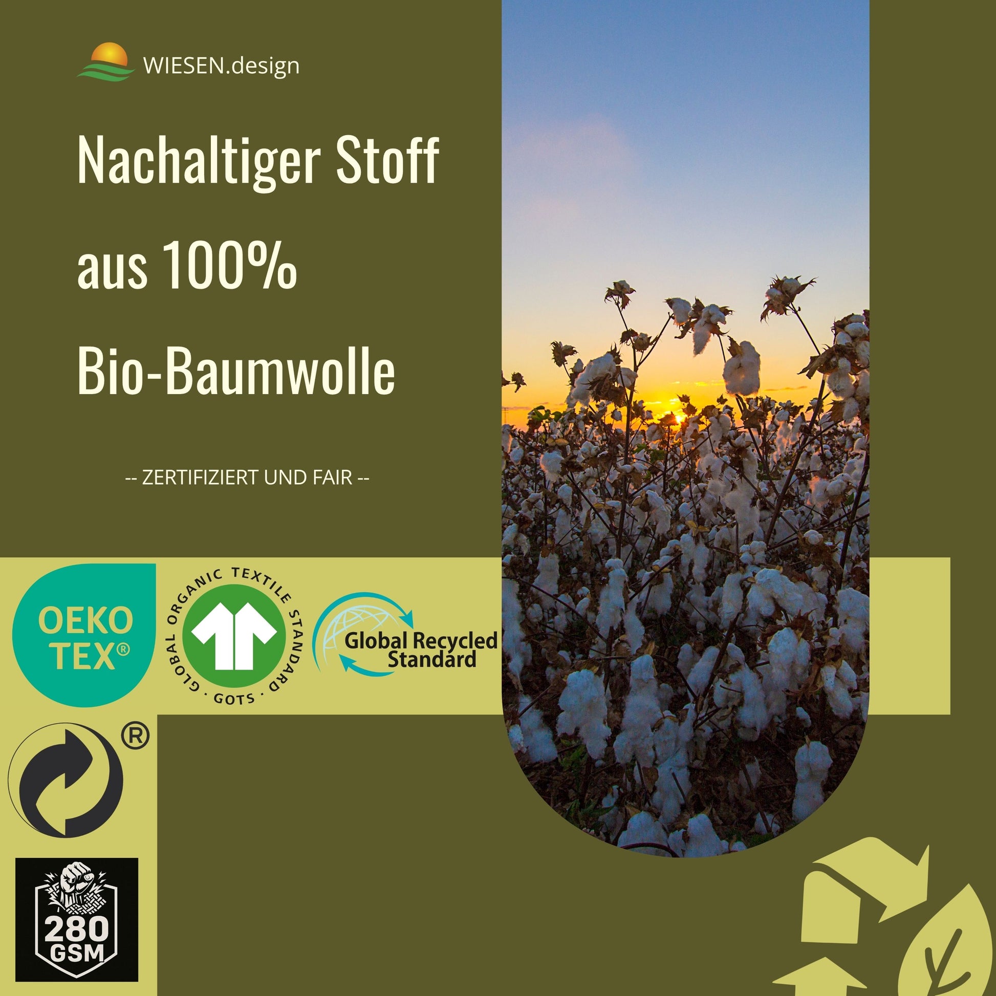 NATÜRLICH & ZERTIFIZIERT - 100 % Bio-Baumwolle, GOTS & OEKO-TEX® zertifiziert. Plastikfrei, schadstofffrei, allergikerfreundlich und umweltbewusst hergestellt.